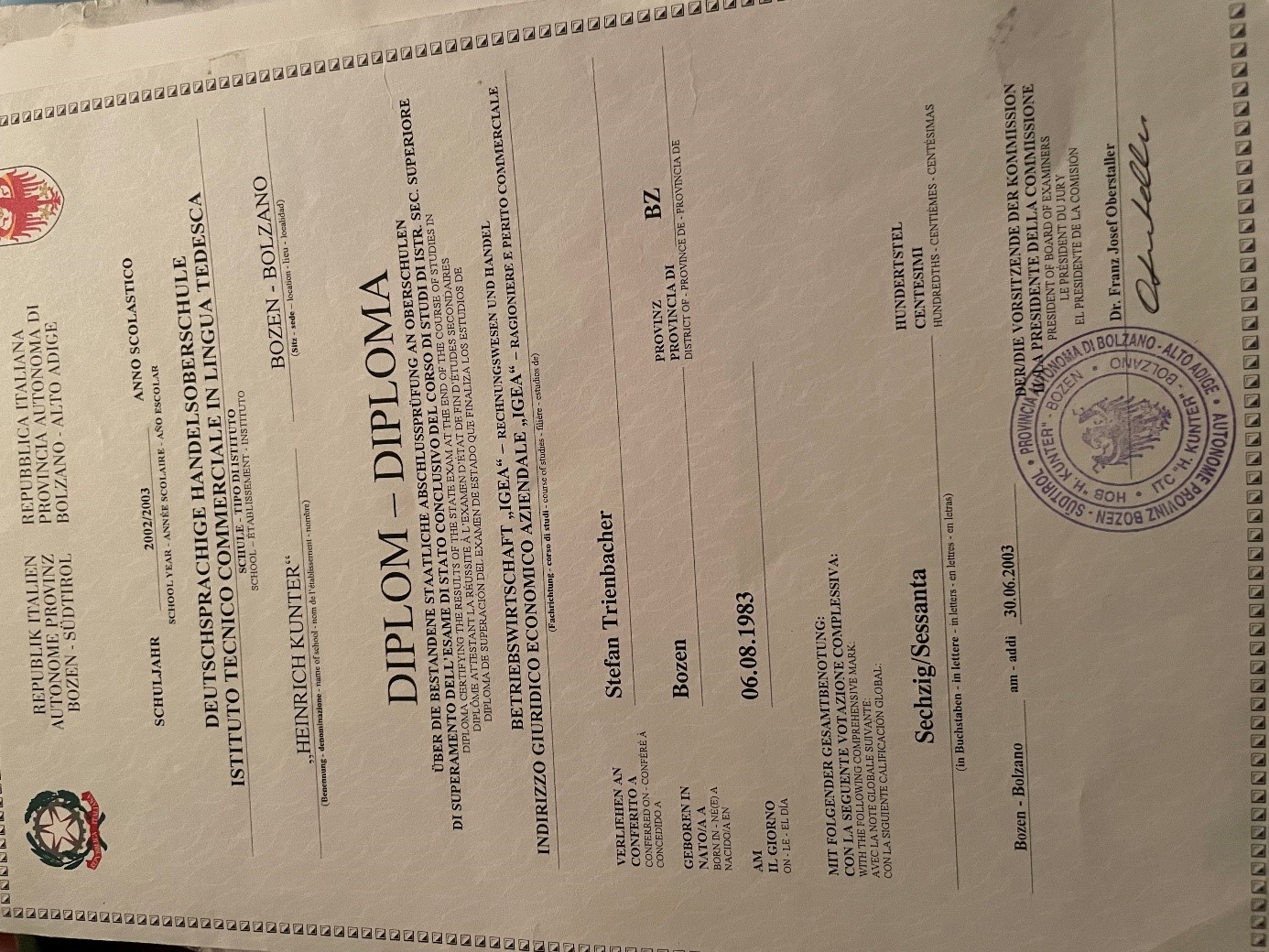 Diploma Trienbacher Stefan